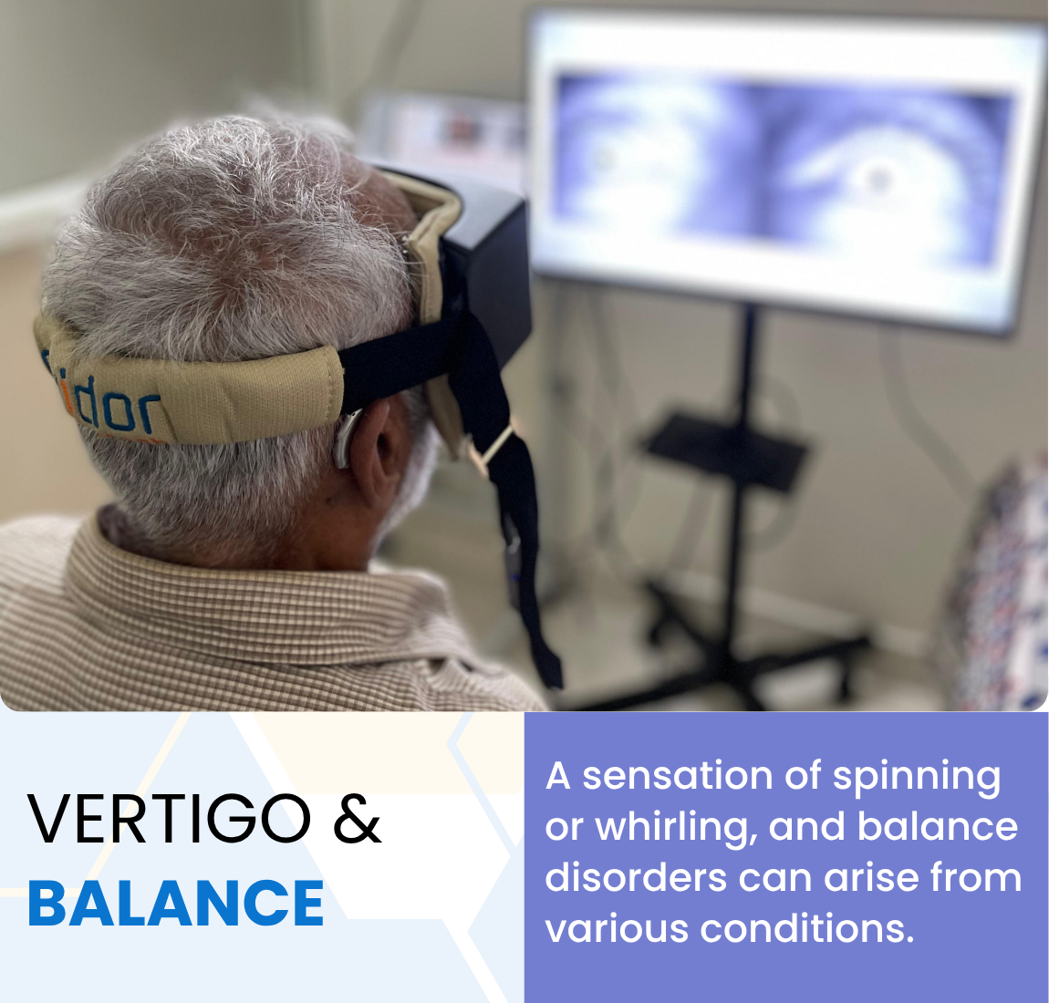 Vertigo and balance care includes comprehensive evaluation and management of dizziness, imbalance, and related symptoms. Diagnostic testing includes clinical assessment and Crainio-occulography (C0G) to helps identify vestibular dysfunctions. Based on the findings, individualized vestibular rehabilitation exercises and management are provided to improve balance, reduce dizziness, and enhance overall stability and quality of life.